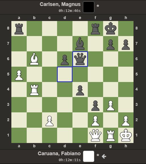 Фабиано пошел слоном на b6. Карлсен вероятно уведет ферзя на е8 с дальнейшим продвижением на g6. Больше потенциала у норвежца.