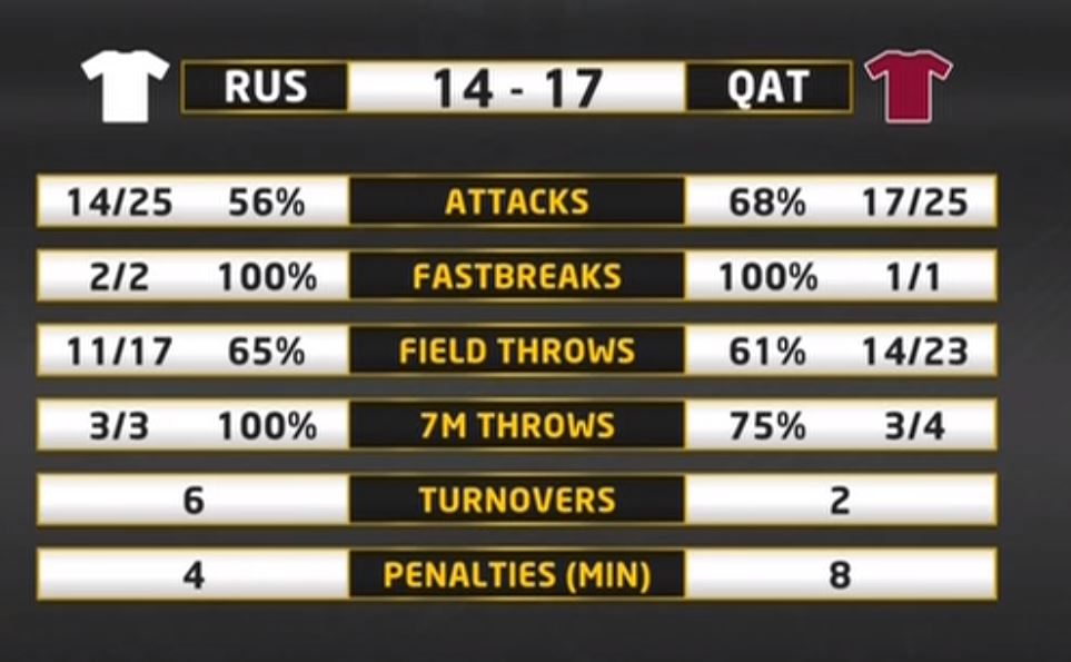 В меньшинстве едва катарская команда не делает счет 11:15, но мяч после броска Мадади попал в перекладину.