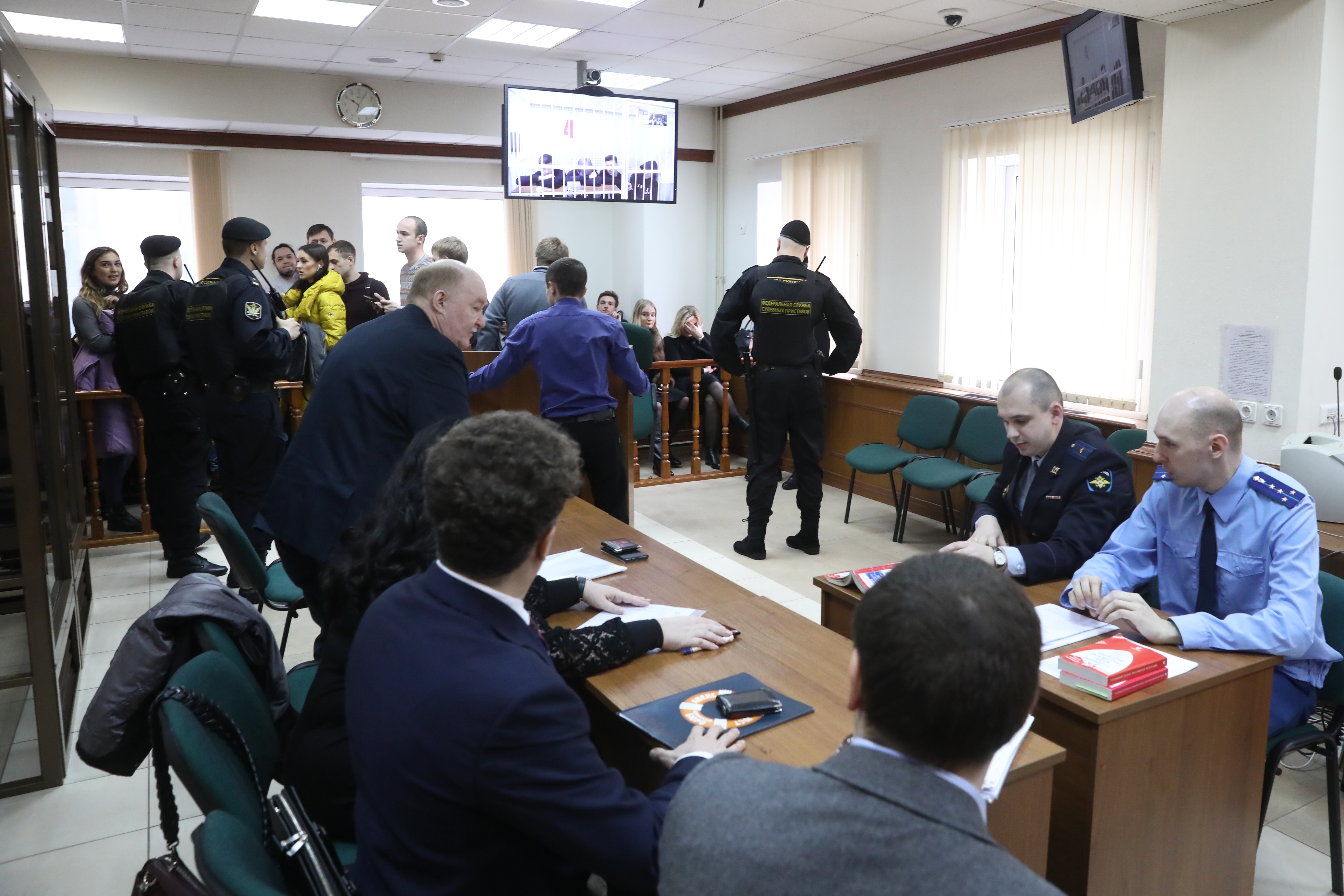 Павел Мамаев и Александр Протасовицкий (слева направо на втором плане) на заседании Тверского районного суда Москвы, 6 февраля 2019 года