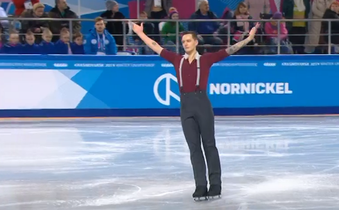 Четверной тулуп, едва не упал с тройного акселя, слегка коснувшись льда рукой. Чисто выполнил каскад тройной флип + тройной тулуп и завершил свое выступление эффектным вращением.
