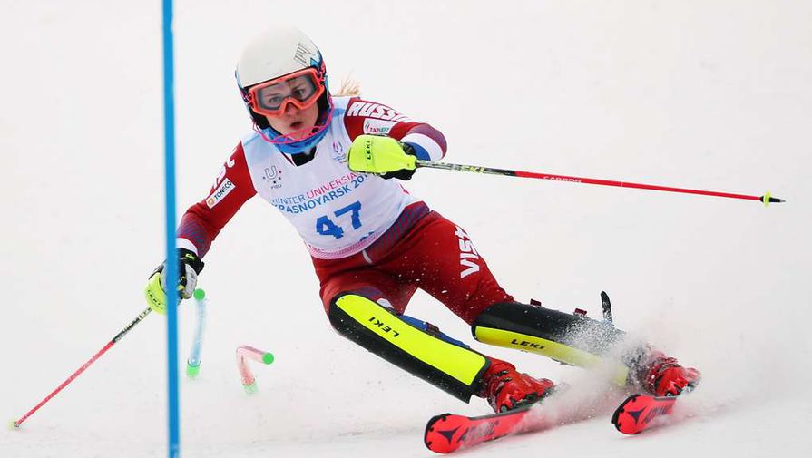 Российская горнолыжница Екатерина Ткаченко заняла первое место в гигантском слаломе.