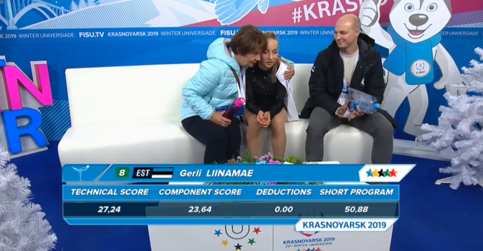 Сорвала тройной сальхов, упала с двойного акселя. Несмотря на это продолжила выступление и психологически не сломалась.