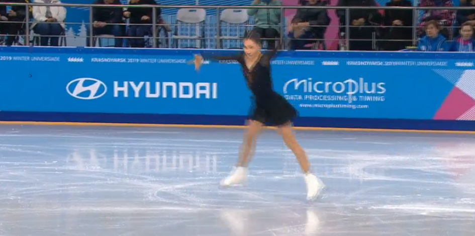 Был заявлен каскад тройной сальхов + двойной тулуп, но решила прыгнуть только сольный сальхов и упала. Небольшая ошибка на двойном акселе, которую она закрыла каскадом тройной тулуп + двойной тулуп.