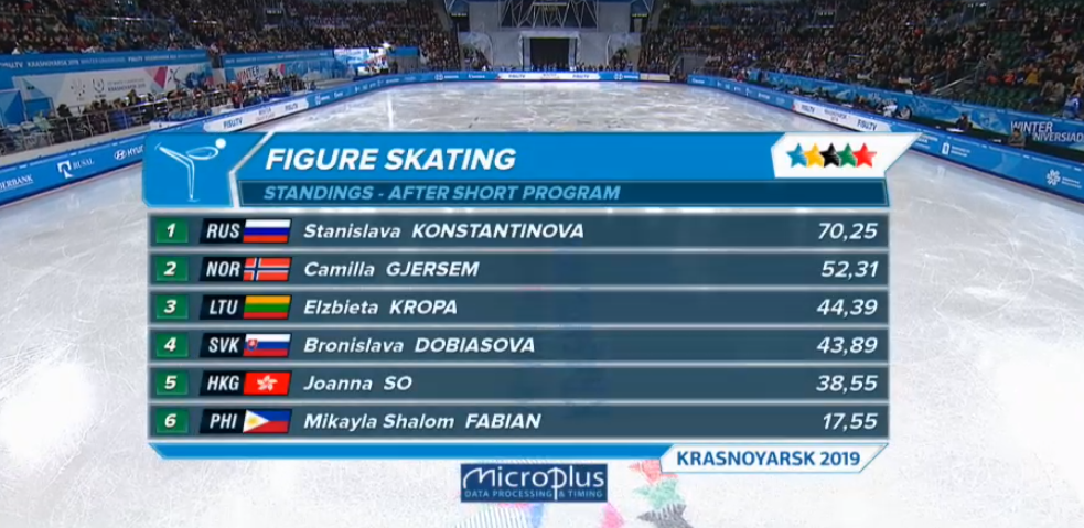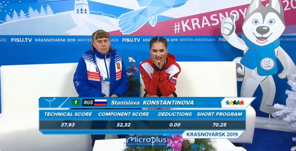 70,25 балла у Константиновой. Своим результатом она довольна, хороший задел перед произвольной программой.