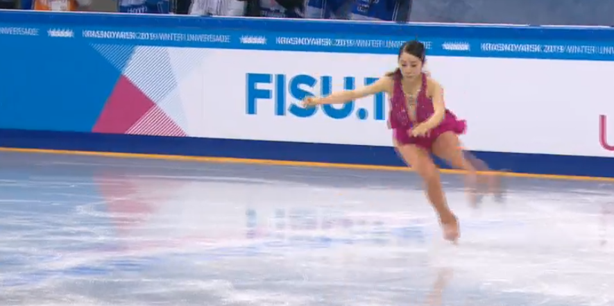 Сорвала двойной аксель, а затем и каскад тройной риттбергер + двойной тулуп, упав с первого прыжка, который она сделала только в два оборота. Также упала тройного флипа, также прыгнув его с недокрутом.