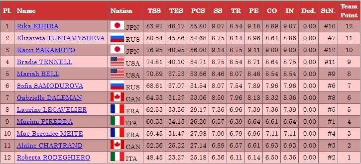83,97 балла получает Рика Кихира. Сместила Туктамышеву с первого места. Невероятные баллы.