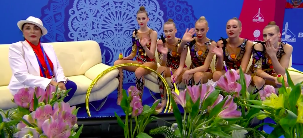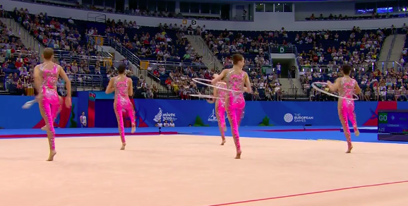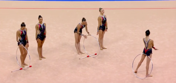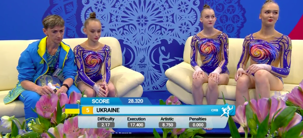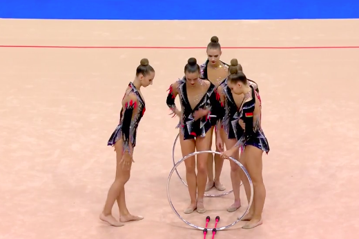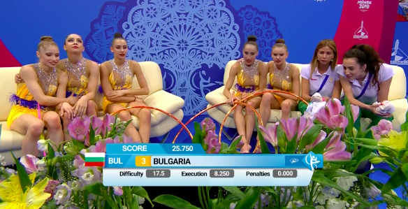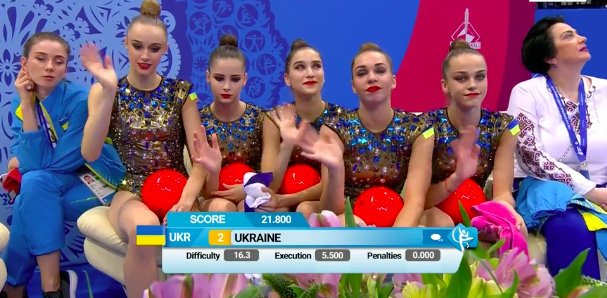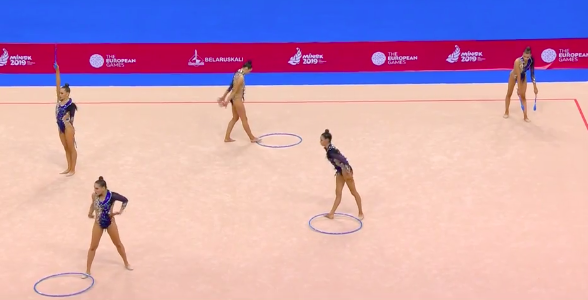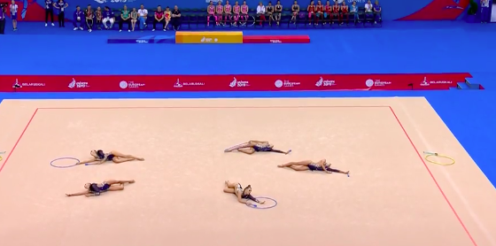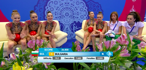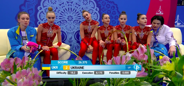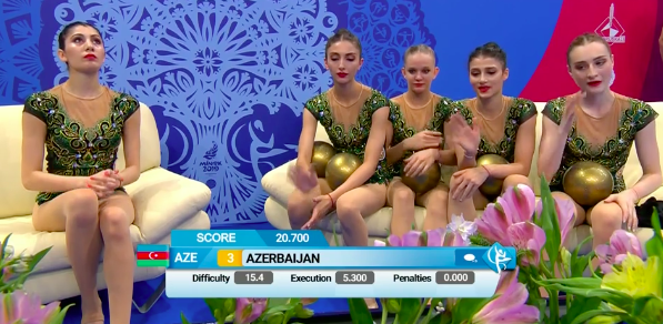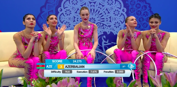 В это же время становятся известны оценки азербайджанок за групповое упражнение с обручами и булавами: