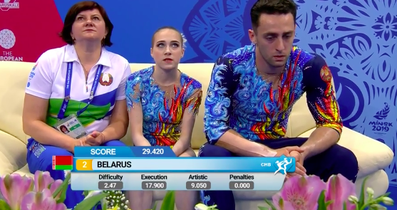 Объявляются баллы белорусский акробатической пары — ребята оказываются на втором месте после россиян!