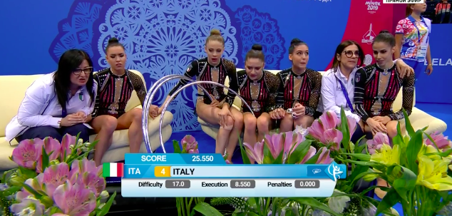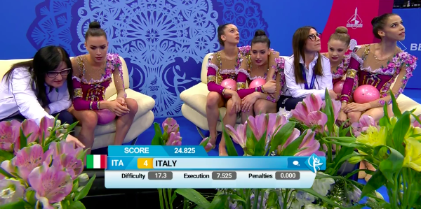 В остальном итальянки завершили номер без эксцессов. В целом все спортсменки выглядят довольными.