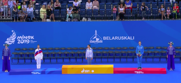 22 июня россиянка Дина Аверина уже одержала на Европейских играх победу в самом престижном виде программы — многоборье, где спортсменки по очереди демонстрируют свои программы со всеми видами предметов (мяч, обруч, булавы и лента) и выявляют сильнейшую по сумме баллов.