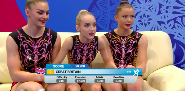 Тем временем объявляют оценки выступивших ранее акробаток из Великобритании.
