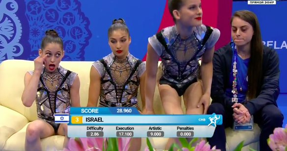 Объявляются оценки акробатического трио из Израиля.
