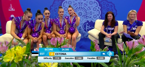 Стала известна оценка групповичек из Эстонии за упражнение с обручами и булавами.