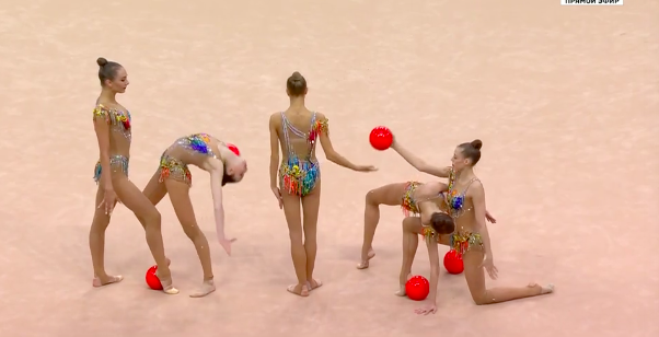 Вот так российские групповички выступили с пятью мячами, победив этом виде упражнений.