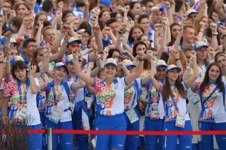 Церемония еще не началась, но настроение у подтягивающихся к стадиону зрителей отменное. И анимация работает как надо.