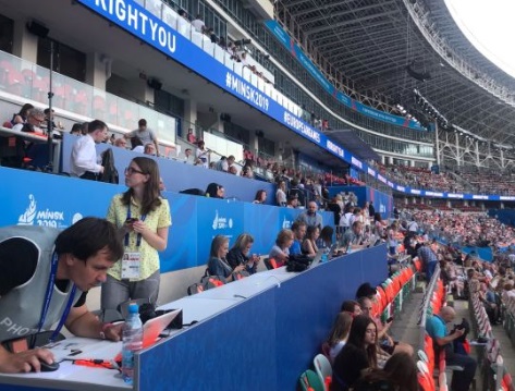 Трибуны уже заполняются, в том числе и журналистами и фотографами.
