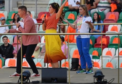В честь 8 тысяч работавших на этих Европейских играх волонтеров поет молодая белорусская певица Кристина Светличная, которой аккомпанирует не кто-нибудь, а бывший гитарист Iron Maiden Тони Мур. Песня называется «We Are The Light»!