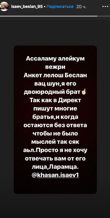 Под последним постом спортсмена в инстаграме, где он просил у земляков поддержки перед боем с «сильным соперником — Бесланом Исаевым», уже скопилось огромное количество слов поддержки его семье и соболезнований.