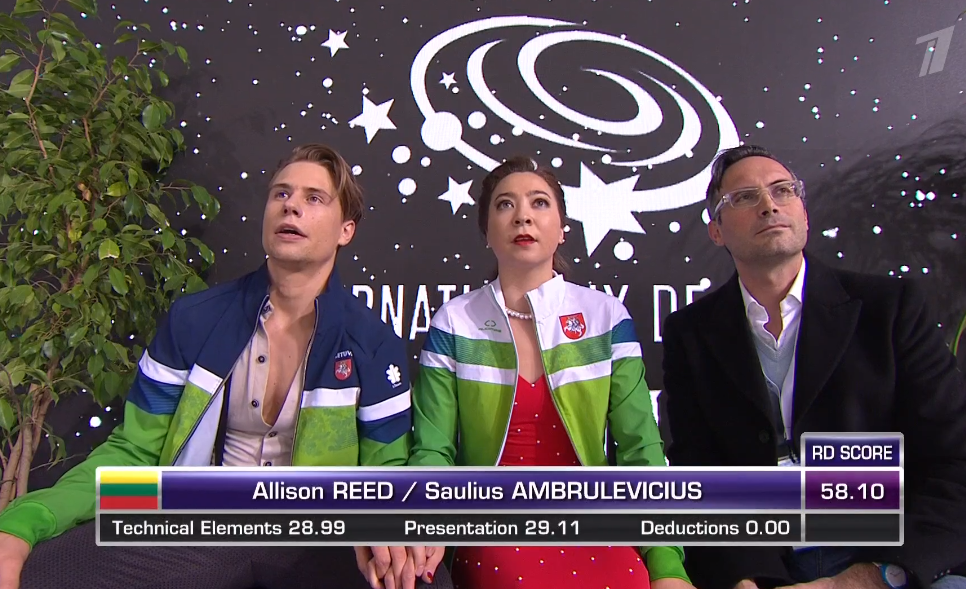 Понятно, что уступают они в техническом плане всем остальным участникам, но оценка за технику даже выше, чем у литовцев. Но вот в последнем элементе партнер упал... Даже сложно предположить, с чем это связано.