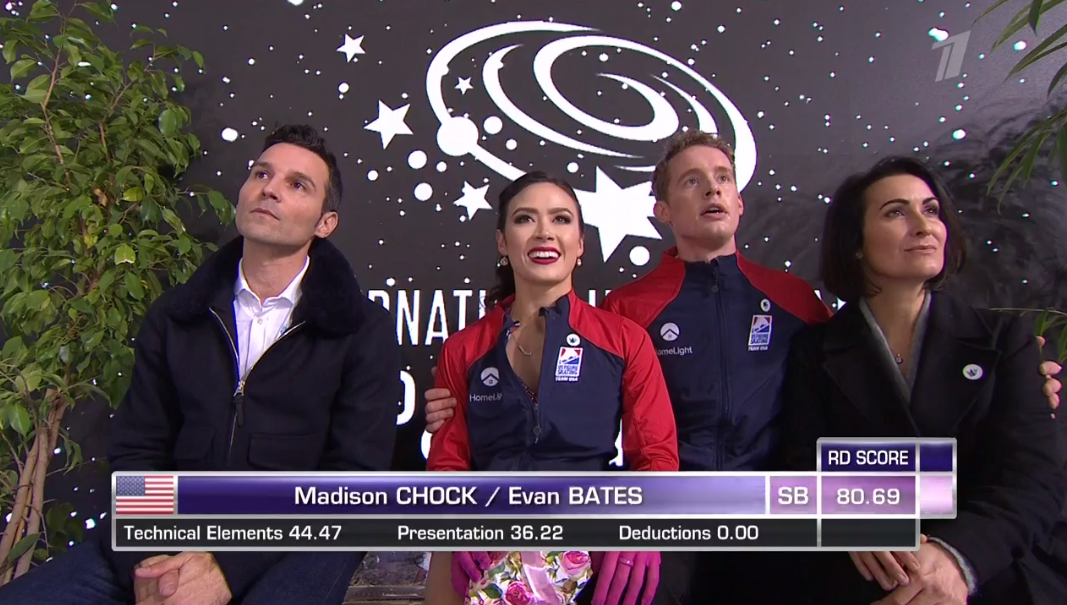 Очевидно, что это совсем другой уровень — все-таки пятикратные чемпионы мира. Это шикарно: сложнейшая программа с филигранным исполнением. Очень легко и непринужденно они сейчас заберут лидерство.