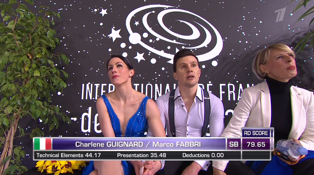 На какие-то сотые по технике они обгоняют лидера. И это несмотря на то, что у Фаббри травма — ошибся он на твизлах. Но справились.