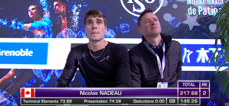 Тем не менее Николя колотит руками воздух после финальной позы — он весьма доволен своим прокатом. Зрители тоже аплодируют спортсмену за взрывную концовку с зажигательной дорожкой шагов.
