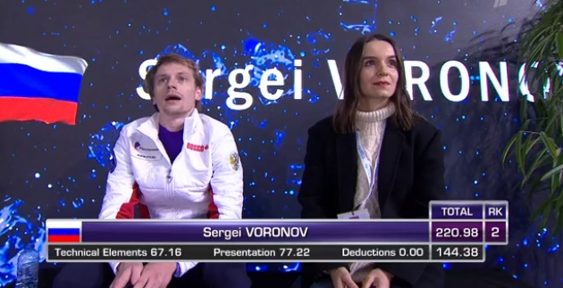 К сожалению, другие россияне не смогли проявить себя так же ярко. Сергей Воронов оказался на седьмом месте, набрав 76,60 балла из-за срыва лутца, который получился у него только двойным и вообще не был засчитан.