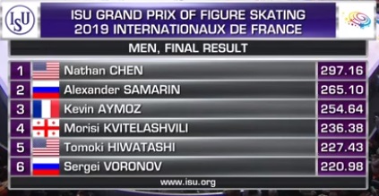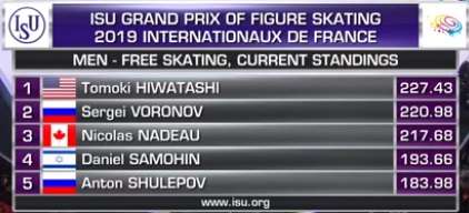 На этом будем заканчивать репортаж о соревнованиях мужчин в произвольной программе на Гран-при во Франции. Спасибо, что были с нами и до новых встреч.