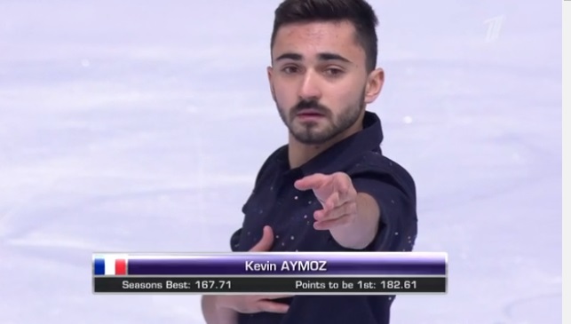 Француз Кевин Аймо на льду. Ему нужно просто невероятно выступить, чтобы обойти Самарина.