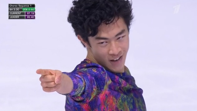 Лидер американец Нэйтан Чен завершает соревнования.