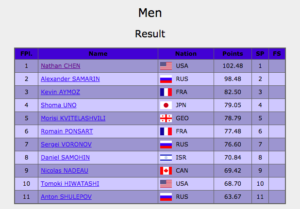 В целом таблица по итогам короткой программы выглядит так: