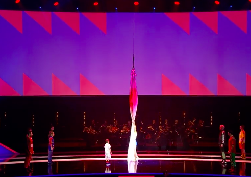 Итак, церемония начинается! Дети в спортивных костюмах демонстрируют акробатические трюки, взмывают в воздух на лентах — в общем, демонстрируют настоящее цирковое представление под аккомпанемент оркестра.