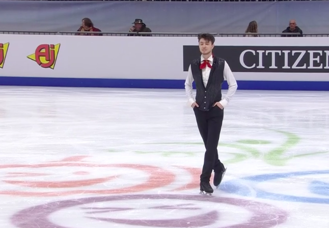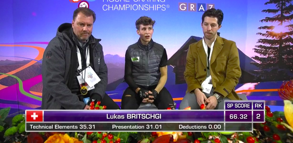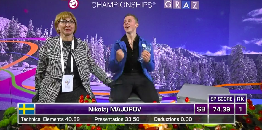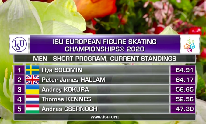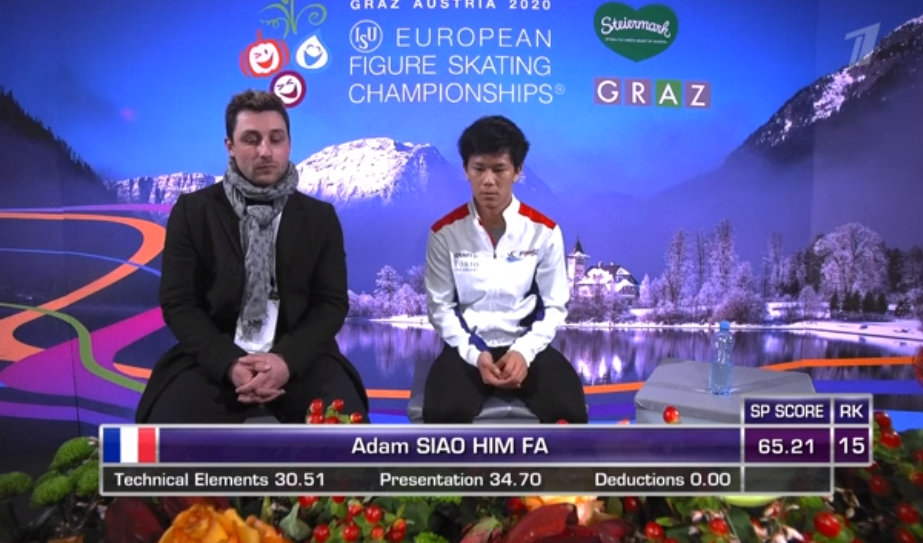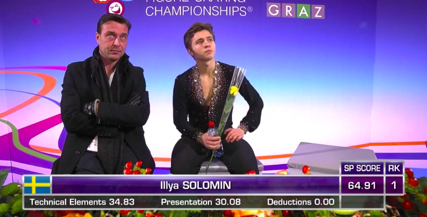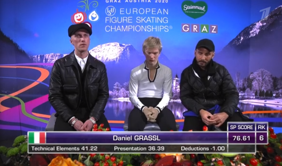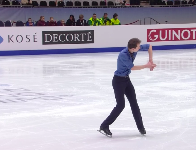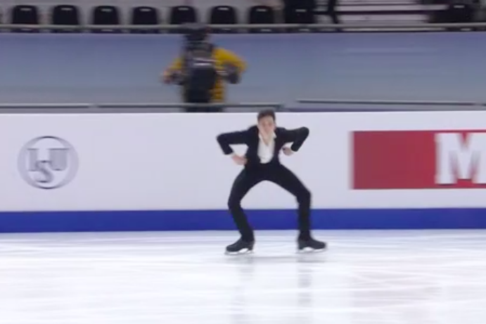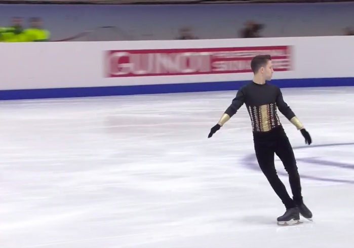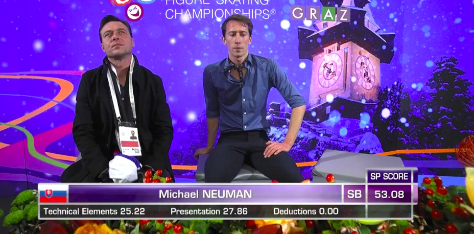 Словак сильно уступает по уровню двум предыдущим участникам, показывая лишь каскад 3+2 (лутц+тулуп) вместо 3+3 и касаясь льда рукой на приземлении с сольного тройного флипа. По сути, чистым из прыжковых элементов получился только двойной аксель в самом начале программы.