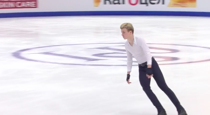 Тяжело, но получился четверной тулуп. Степаут на тройном акселе, помарка на каскаде тройной флип + тройной тулуп. Без особой динамики, хоть и с хорошей хореографией катается уроженец Москвы.