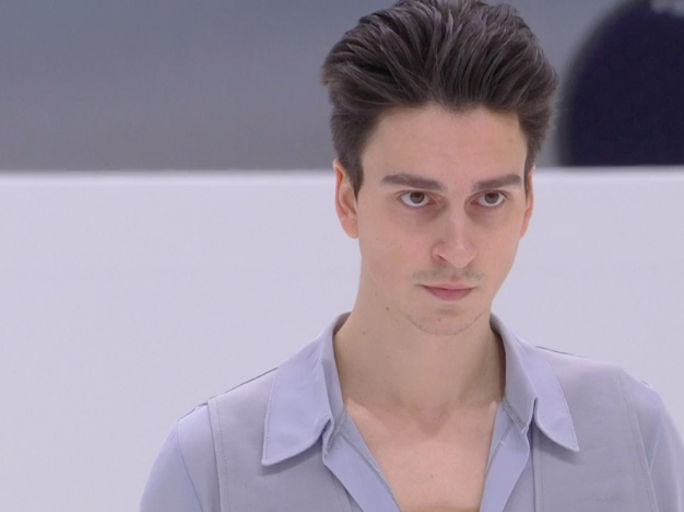 Зато каскад тройной лутц + тройной тулуп и сольный тройной риттбергер Соломин исполнил на ура. Выступление прошло в довольно высоком ритме, и фигурист сумел за ним угнаться, показав заковыристую дорожку шагов в концовке. Однако переключения композиции из пафосной лирики в пафосную боевую песнь были такими резкими, что невольно сбивали с толку. А уж костюм Соломина вообще непонятно, как относился к этой истории.