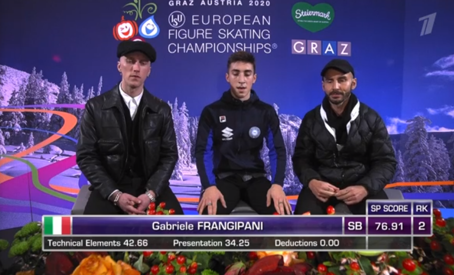 На льду — итальянец Габриэле Франджипани! Он катается под блюз «Unholy War» (Jacobs Banks).