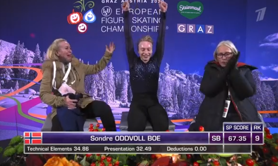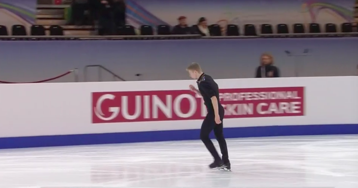 Вместо тройного акселя прыгнул только двойной, каскад тройной лутц + тройной тулуп с помаркой на приземлении, тройной флип, казалось, почти сорвал, но вытащил. Медленно и совсем без энергии. Странно, потому что у скандинава уже шесть чемпионатов Европы за плечами.
