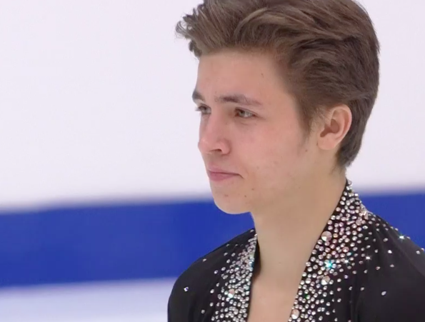 Отличный четверной сальхов первым прыжком, а вот на тройном акселе степаут. Каскад тройной лутц + тройной тулуп получился на хорошие плюсы. Очень зрелое выступление Артура, несмотря на юный возраст. Не волновался, не тушевался.