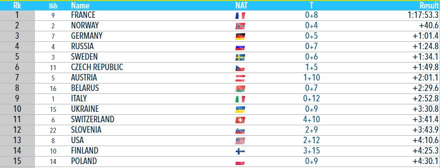 ust one spare for Braisaz and @FedFranceSki leaves with a 12.9-second advantage, which for sure will be increased by the final hand-over. Once again it is a battle between France and @NSSF_Biathlon! Be sure to follow the action on https://t.co/MSJYx30KUx pic.twitter.com/zg5jeIPVxN