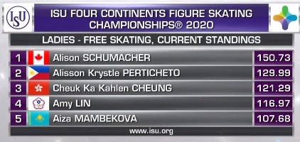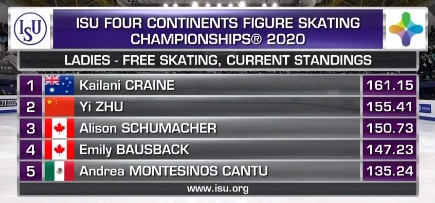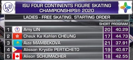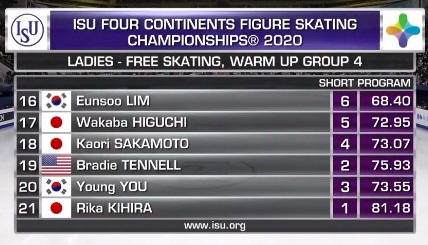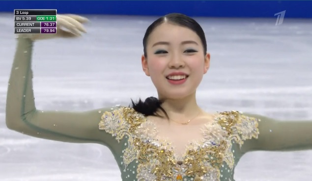 Только пятая в произвольной Сакамото, но благодаря короткой поднимается на второе место, вытесняя Чен из тройки.