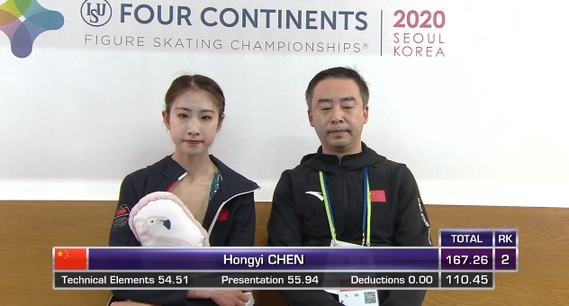 Хон Чен выходит только на второе место. Порезали ей техническую оценку после пересмотра элементов судьи.