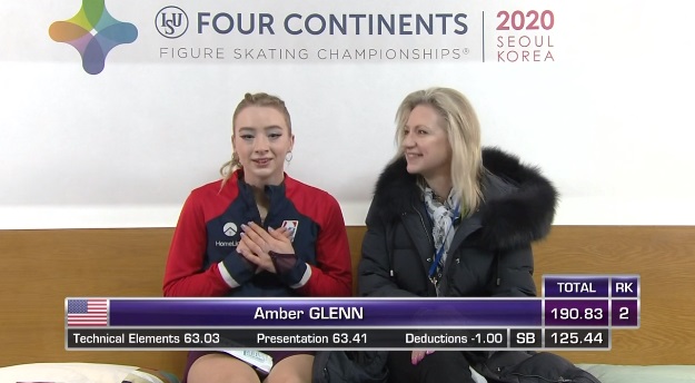Оценки Гленн. Она выходит на второе место со своим лучшим результатом сезона.