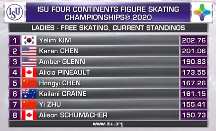 Оценки Ын Су Лим выводят ее на третье место, при этом для самой спортсменки это лучший результат в сезоне.