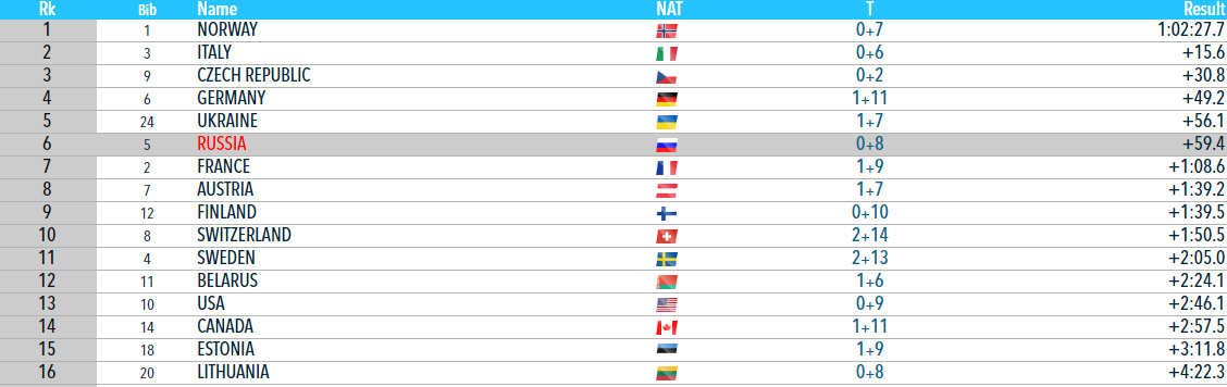 Россия могла тоже претендовать на более высокие места. И Юрлова-Перхт, и Елисеев, и Логинов показали отличный ход. Александр так и вовсе отстрелялся безошибочно. Но вот остальные подвели, конечно.