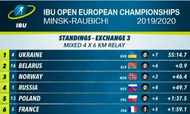 Сборная Украины выиграла смешанную эстафету на чемпионате Европы, Россия — вторая