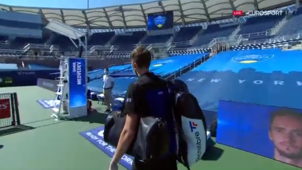 Первый же розыгрыш в размене ударами выигрывает Медведев — 0:15.