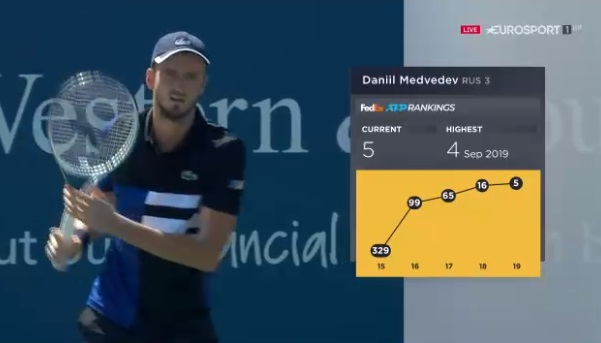 А вот тут Медведев с любимого бэкхенда сорвал удар — больше.
