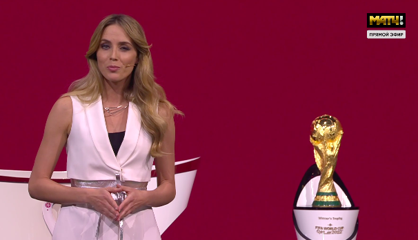 Итак, мероприятие начинается! Ведущая клубного телеканала мадридского «Реала» Кристина Гуйон приветствует нас на жеребьевке отборочного турнира европейской части ЧМ-2022.