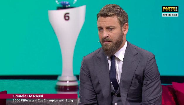В студию приглашают чемпиона мира — 2006 в составе сборной Италии Даниэле де Росси. Он будет помогать проводить жеребьевку. В беседе с ведущей чемпион рассказывает, как серьезно переживали в Италии недавний уход Диего Марадоны — легенды «Наполи» и всего футбола.
