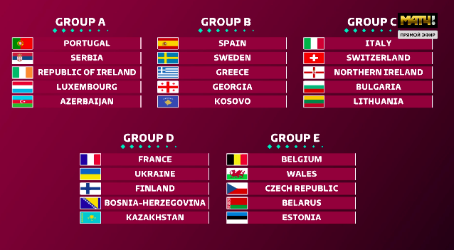Белоруссия — в группу Е к Бельгии, Уэльсу и Чехии.